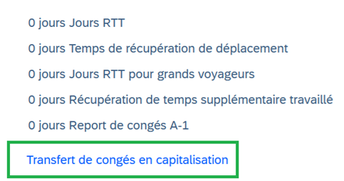 Cliquer sur le lien « demande de paiement » du type de temps souhaité et indiquer le nombre de jours à transférer en CAPI
