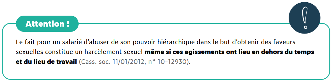 Est assimilée au harcèlement sexuel toute forme de pression grave, répétée ou non, exercée dans le but réel ou apparent d’obtenir un acte de nature sexuelle, que celui-ci soit recherché au profit de l’auteur des faits ou au profit d’un tiers (art. L. 1153-1 C. trav.).